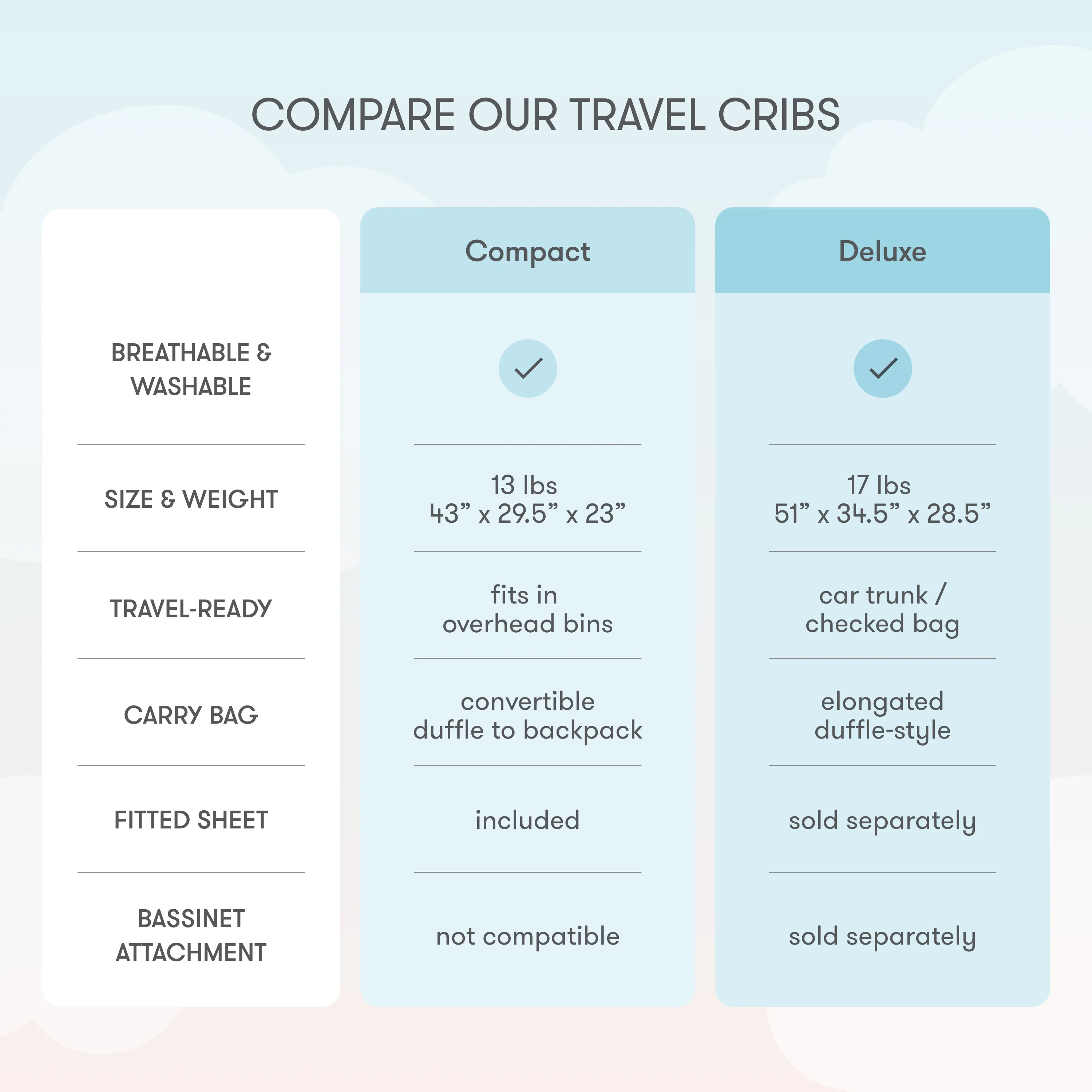 Take safe sleep on the go with the only compact travel crib featuring our ultra-breathable and washable Wovenaire® core. Lightweight, travel-friendly, and built for peace of mind — wherever your travels take you.